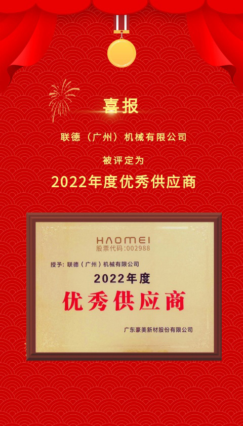 聯(lián)德憑借精湛的專業(yè)技術(shù)、專業(yè)化的服務(wù)、高效率高質(zhì)量的交付以及強大的創(chuàng)新和解決問題的能力,從眾多供應(yīng)商中脫穎而出,榮獲廣東豪美新材股份有限公司“2022年度優(yōu)秀供應(yīng)商”稱號。這不僅是對聯(lián)德工作的認(rèn)可,也是對未來深度合作的鼓勵。